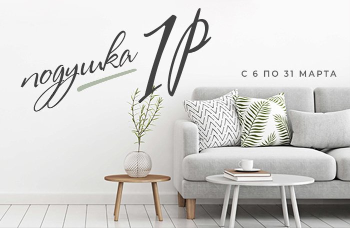 Акция марта: при покупке портьеры или римской шторы в марте, подушка за 1 ₽.