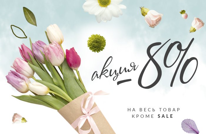 Вся продукция компании Olexdeco, кроме товаров со скидкой, продаётся выгоднее на 8 %, только с 6 по 8 марта.