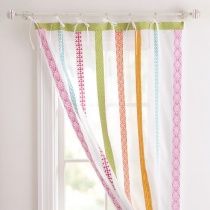 Украсьте гардины с помощью симпатичной занавески, сделанной из скатерти. Лучше всего подойдет квадратная или прямоугольная скатерть с кистями, оборками или фестонами – эти декоративные элементы украсят изделие и их не придется пришивать. Разрежьте скатерть на две части (удобнее всего взять квадратную скатерть размером 140х140 см, чтобы ее легко можно было разрезать пополам). Обработайте обрезанные концы термоклеевой лентой и повесьте гардины на кольца с крючками.