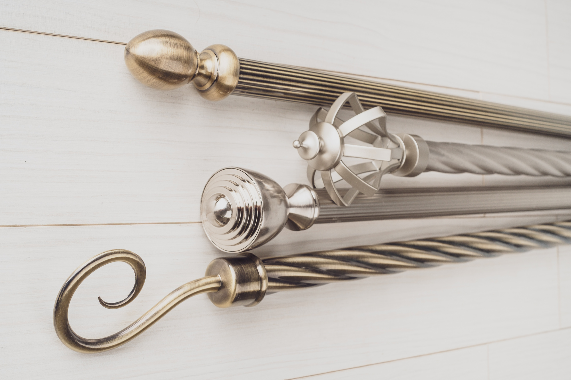 Кованые металлические настенные карнизы с диаметром 35 мм – вот лучшее решение для большой просторной гостиной. Они подойдут под любой стиль комнаты и станут ее дополнительным и привлекающим к себе внимание украшением. Выбирайте однорядные или двухрядные карнизы исходя из своих предпочтений по дизайну.