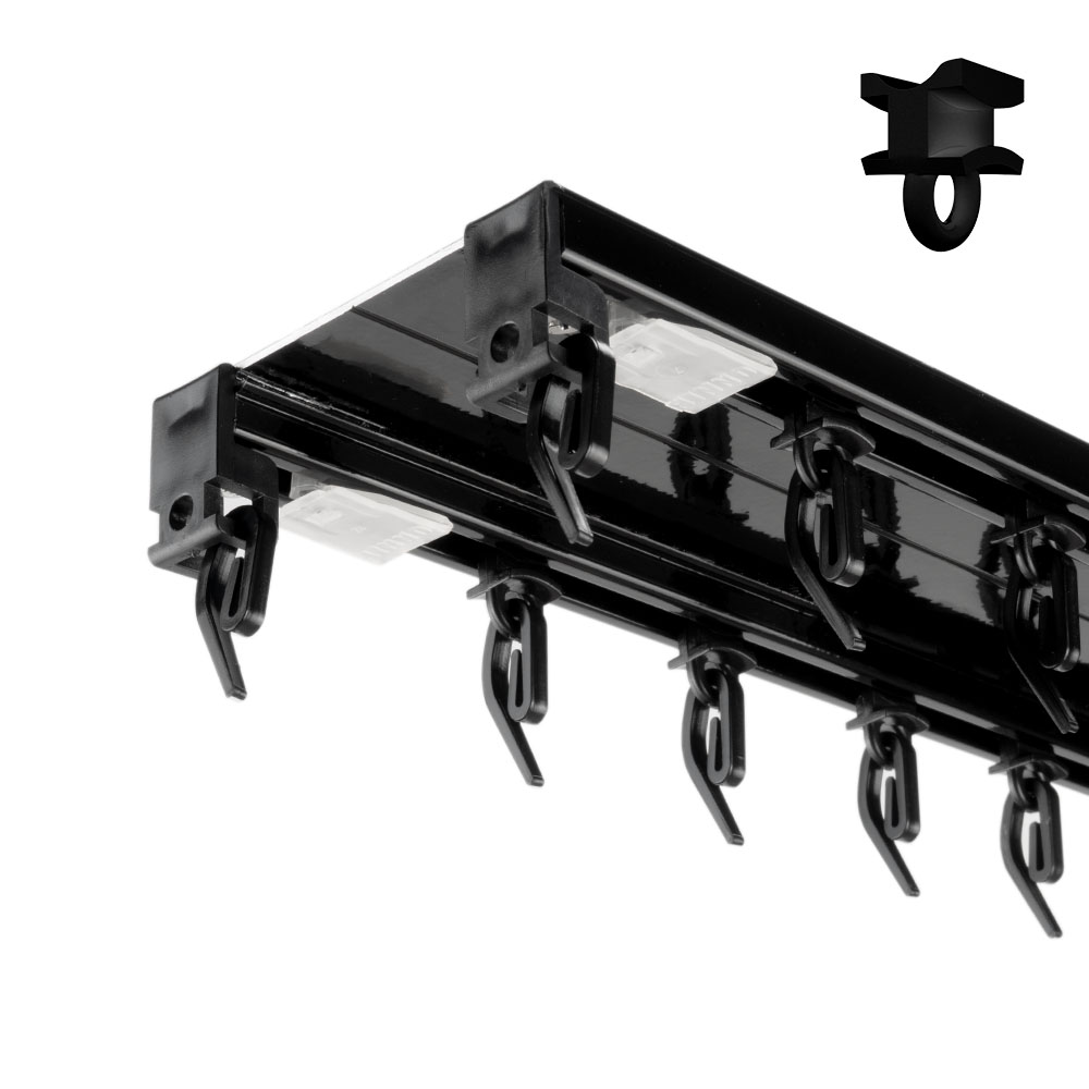 Поддерживает два типа бегунков: бегунок скольжения и бегунок с роликом «Европа», что позволяет легко двигать тяжелые шторы