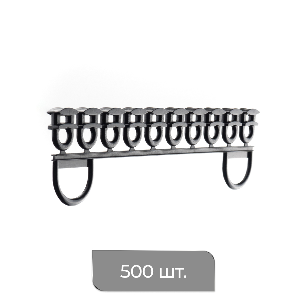 Для удобства монтажа бегунки соединены в ленту по 10 штук – это ускоряет сборку карниза и упрощает инвентаризацию. Блок с бегунками легко вставляется в профиль через торец, после чего соединительные перемычки обламываются.