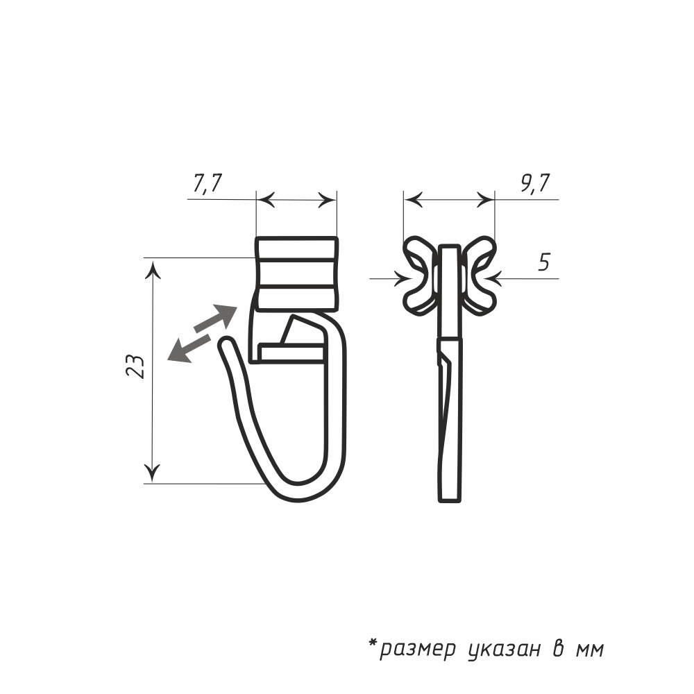 Бегунок «Х-образный» с крючком предназначен для подвешивания штор на карнизах из алюминиевых профилей с шириной дорожки 6 мм. Его уникальная форма обеспечивает устойчивость и плавное скольжение по профилю, что позволяет легко управлять шторами и равномерно их распределять.