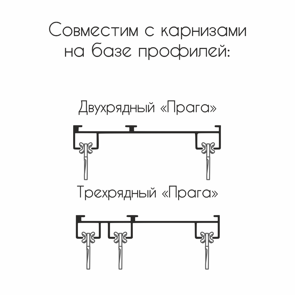 Бегунок Х-образной формы легко помещается в паз рабочей дорожки и передвигается по металлическому профилю свободно и бесшумно.