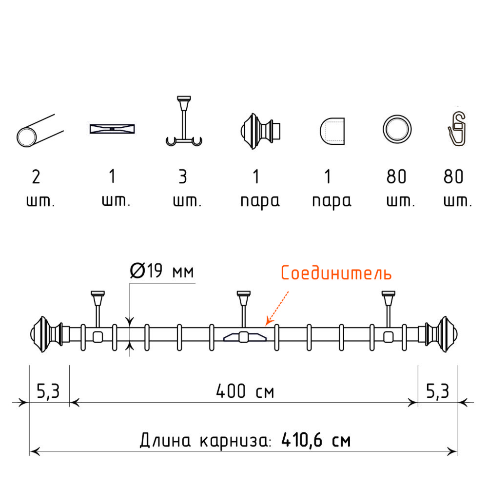 | Соединитель для круглых карнизов (19) | 2 шт |