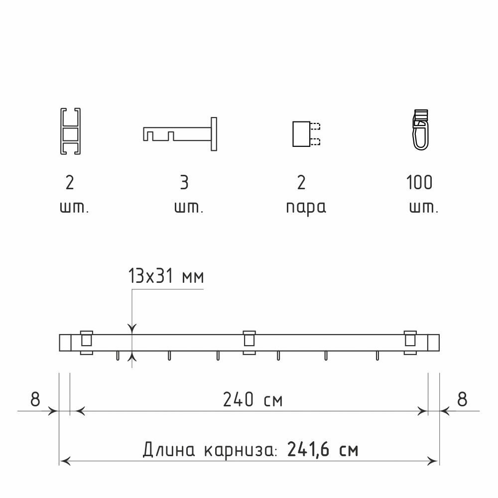 | Профиль «Лайн» 13х31 мм (ШН 240) | 2 шт |