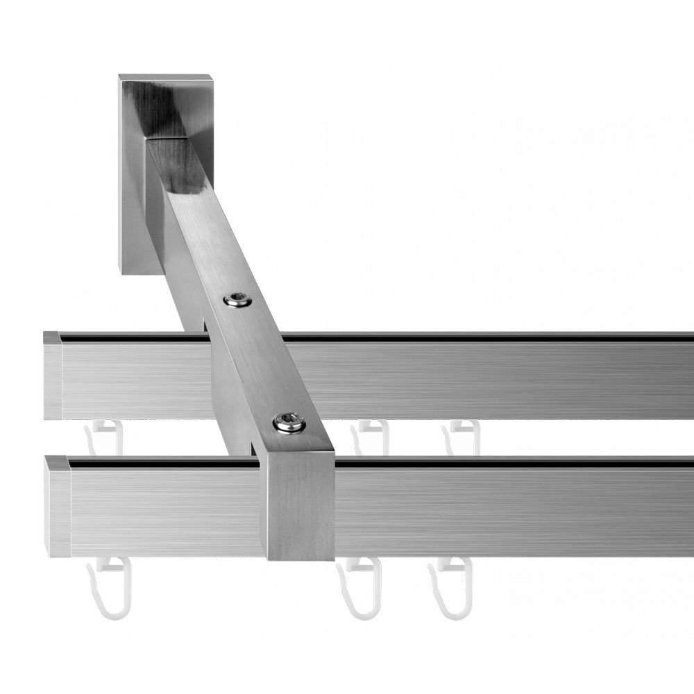 Двухрядный стеновой кронштейн «Лайн» идеально вписывается в сдержанные минималистичные интерьеры, сочетая простоту и прочность алюминиевых профилей.