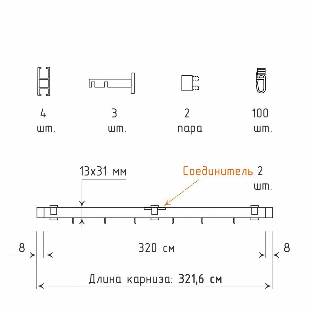 | Кронштейн «Лайн II 13х31» (ШН) | 3 шт |