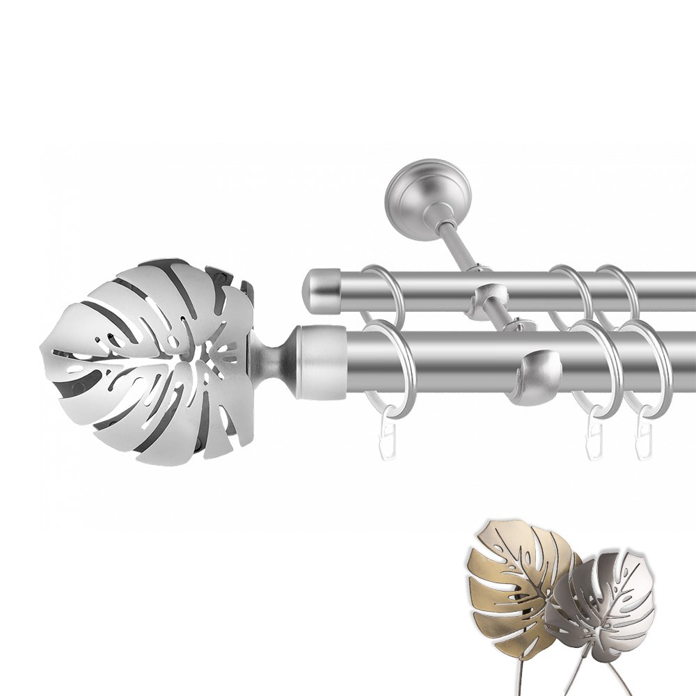 Двухрядный стеновой карниз «Монстера» можно смело назвать дизайнерской моделью. Кронштейны и наконечники данной модели – это совместная разработка конструкторов и дизайнеров компании, основанная на собственных практических исследованиях и учитывающая пожелания клиентов.