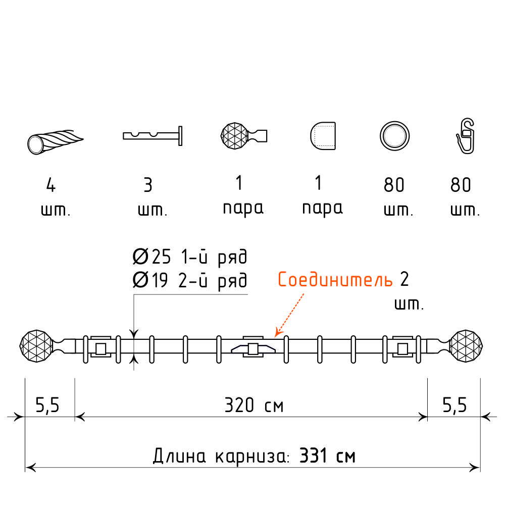 | Соединитель для круглых карнизов (25) | 1 шт |