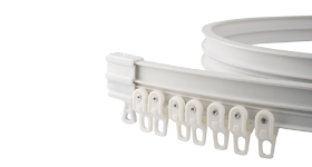 В случае необходимости гибкий карниз легко подрезается при помощи ножниц. Это не влияет на его технические характеристики и внешний вид крепления.