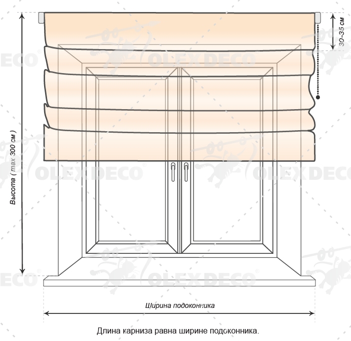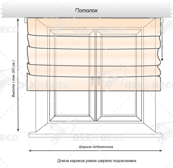 Максимальная высота шторы для данной модели составляет 300 см (3 метра).