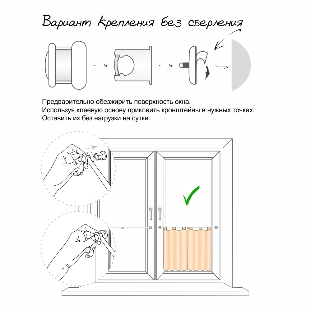 Раздвижной миниатюрный карниз подходит для интерьера в любом стиле. Круглый выдающийся кронштейн выполняет одновременно и функцию наконечника. Благодаря раздвижному элементу кронштейна имеется возможность при необходимости увеличивать отступ карниза от окна. Телескопическая трубка позволяет регулировать необходимую длину карниза, представленную в двух размерах. Кронштейны крепятся на створках окон в нужных точках с помощью двустороннего скотча. Есть возможность закрепить кронштейны с помощью саморезов, которые не входят в комплектацию. В этом случае нижнее основание крепежа не понадобится. |