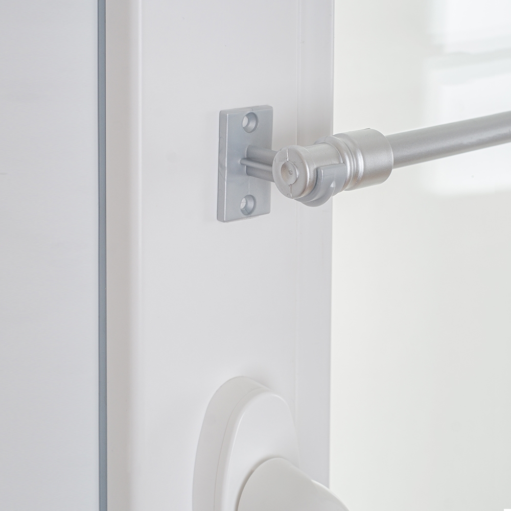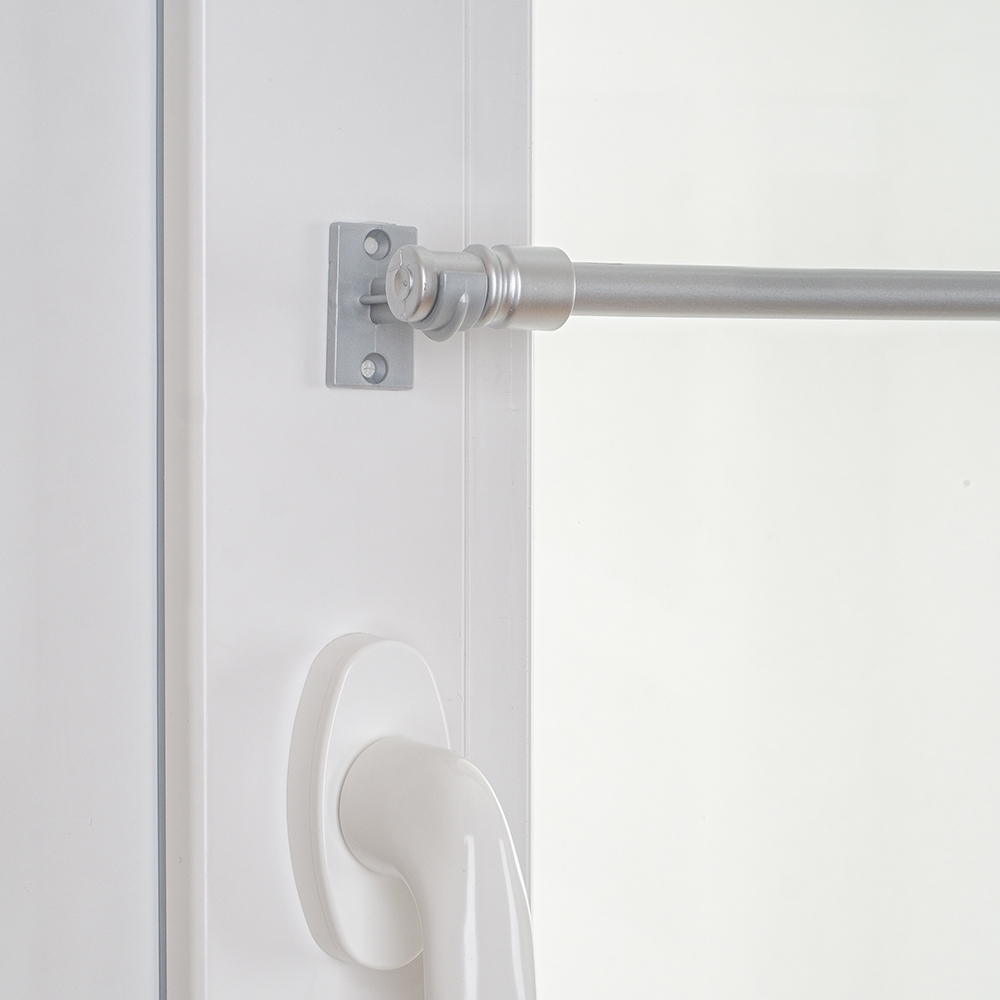 Мини-карниз открытого типа – простой и удобный в эксплуатации. Его легко можно снимать с открытых кронштейнов для поддержания чистоты занавесок. В комплектации имеется 2 пары кронштейнов различной длины. Удлиненные кронштейны необходимы в том случае, если нужно увеличить отступ карниза от окна. Укороченные используются для размещения занавесок ближе к окну. Кронштейны крепятся на створках окон в нужных точках с помощью двустороннего скотча или саморезов (все необходимые компоненты входят в комплект). Регулируемая телескопическая штанга имеет декоративные цилиндрические наконечники, которые защелкиваются на зафиксированные кронштейны. |