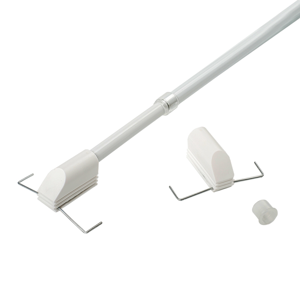 Это особенный вид мини-карнизов, имеющий механический способ крепления в виде металлического пружинного зажима. Такой карниз устанавливается исключительно на открывающуюся часть окна с боковых сторон. Кронштейны с зажимом являются одновременно наконечниками, фиксирующимися на телескопической штанге с двух сторон. Все компоненты представляют собой единую конструкцию мини-карниза и прочно крепятся на створке окна. Мини-карниз выполнен в классическом белом цвете и не выделяется на фоне окна. |