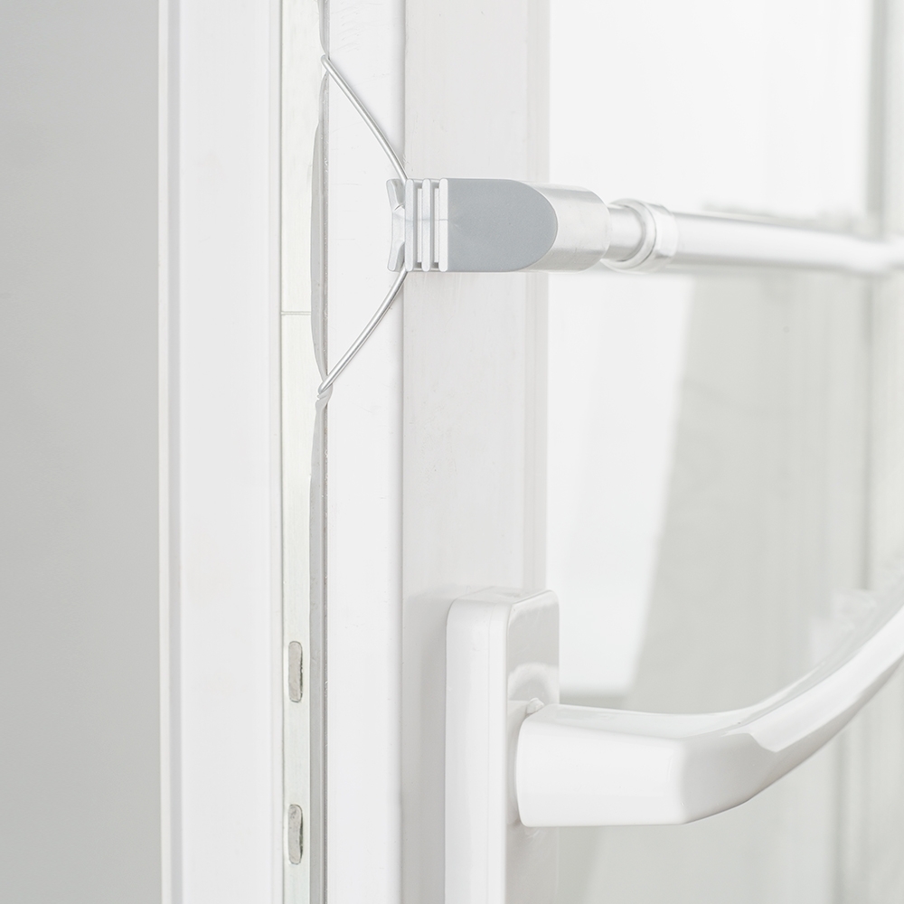Это особенный вид мини-карнизов, имеющий механический способ крепления в виде металлического пружинного зажима. Такой карниз устанавливается исключительно на открывающуюся часть окна с боковых сторон. Кронштейны с зажимом являются одновременно наконечниками, фиксирующимися на телескопической штанге с двух сторон. Все компоненты представляют собой единую конструкцию мини-карниза и прочно крепятся на створке окна. Мини-карниз не выделяется на фоне окна, он выполнен в цвете «сатин» для стилистического акцента в интерьере. |