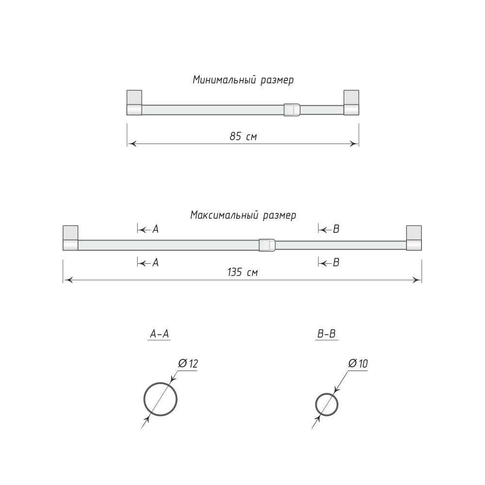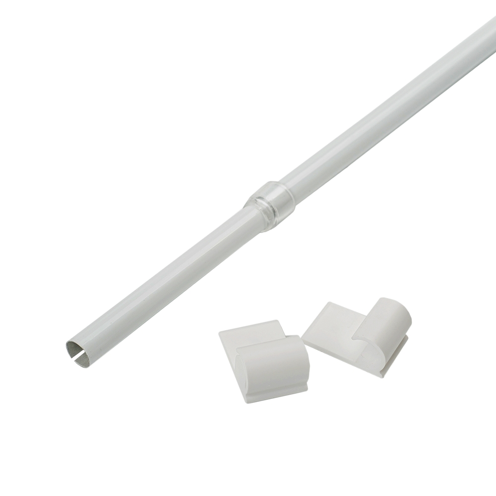 В зафиксированные кронштейны вставляется основа карниза – регулируемая телескопическая штанга.
