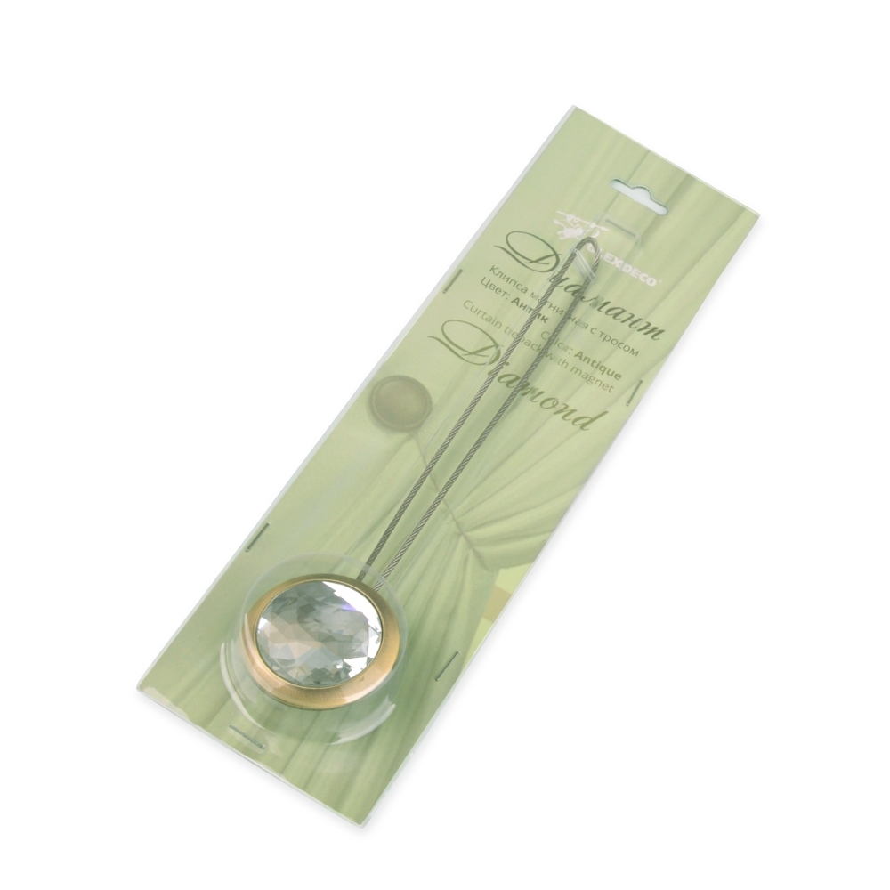 | Наименование для печати | Клипса магнитная «Диамант» ø5 см для легкого и среднего веса штор с тросом 38 см А |