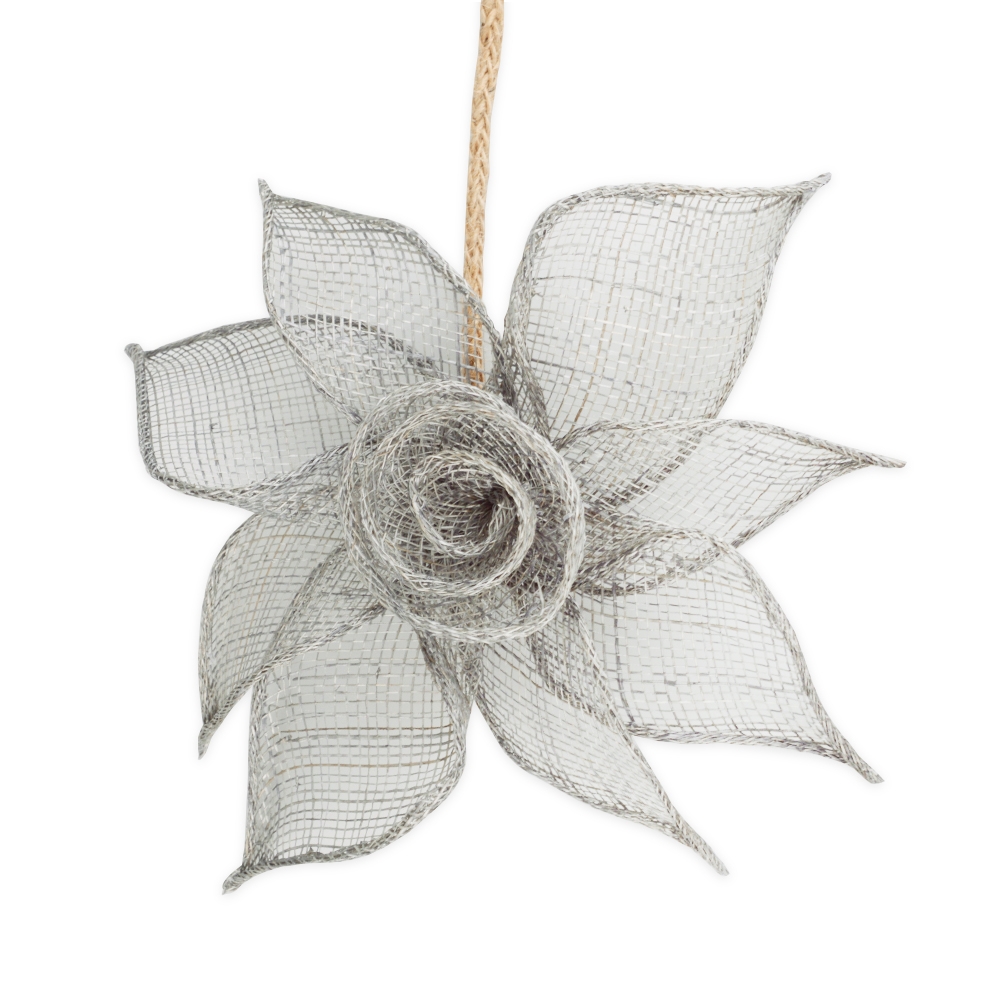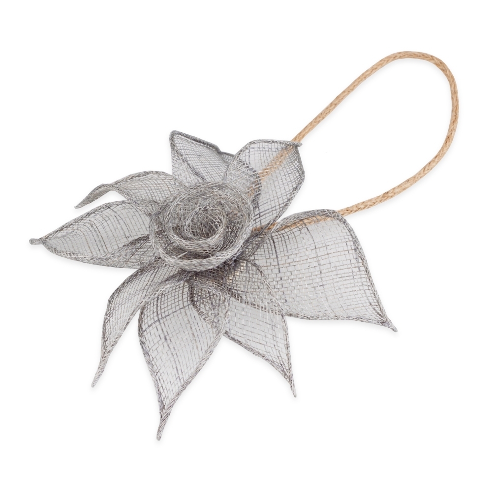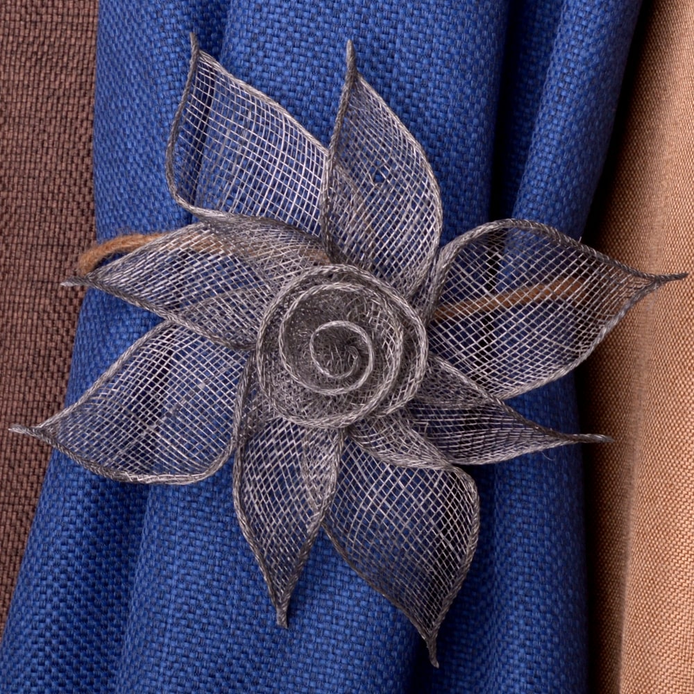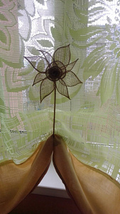 Клипса в форме нежнейшего цветка лилии отлично впишется в декоративное оформление окна, украсив его при этом. Модель ручной работы изготовлена из натуральных материалов: дерева, мешковины, хлопка.