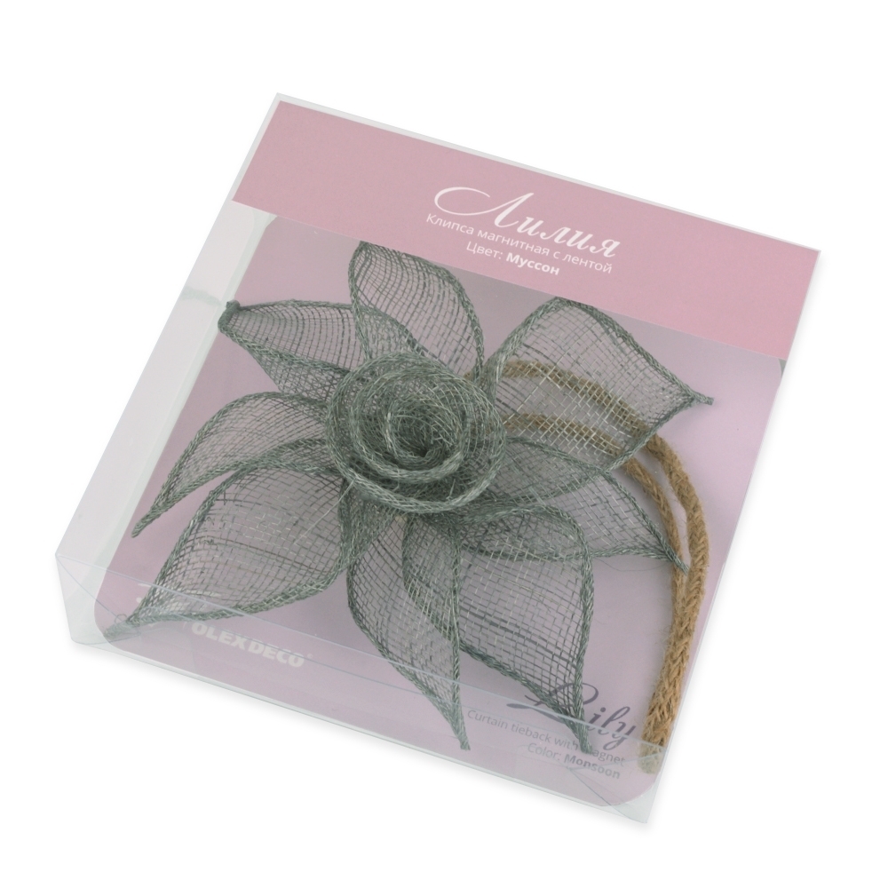 | Наименование для печати | Клипса магнитная «Лилия» размер 15 см для легкого веса штор со шнуром 38 см Муссон |