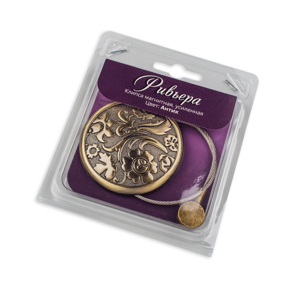 | Наименование для печати | Клипса магнитная «Ривьера» ø7 см для тяжелого веса штор с тросом 30 см А |