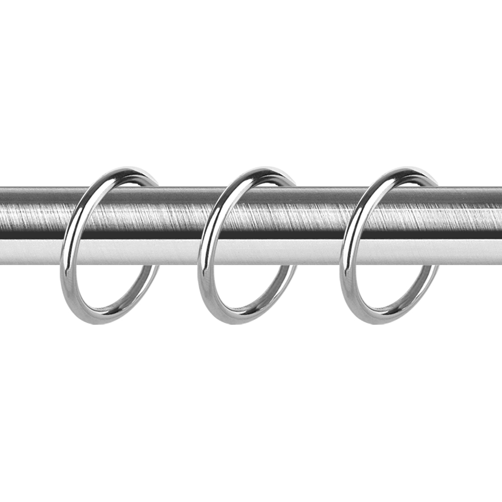 С кольцом, надеваемым на трубу, соединяются специальные приспособления (шторные крючки, металлические зажимы), непосредственно к которым и крепятся портьеры.
