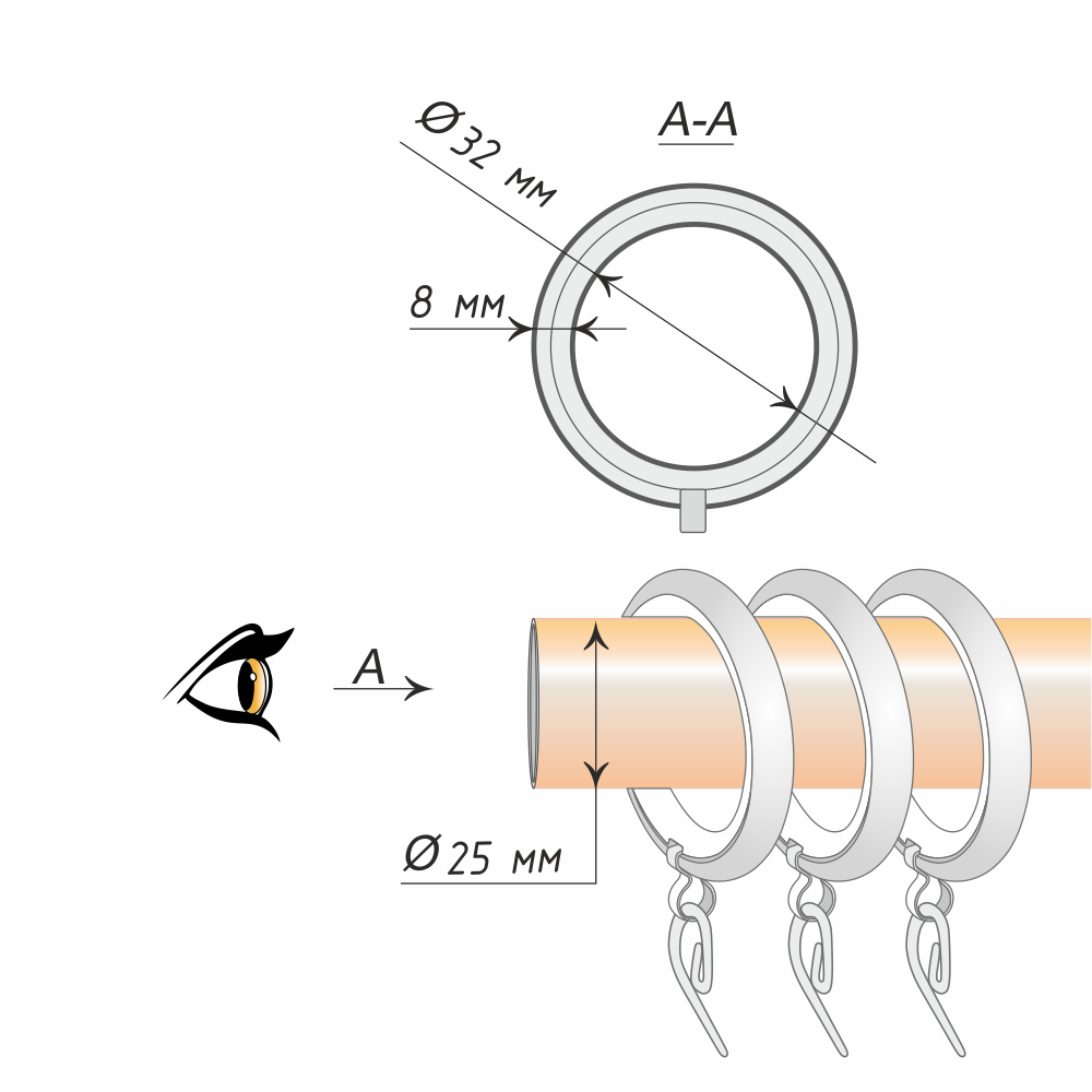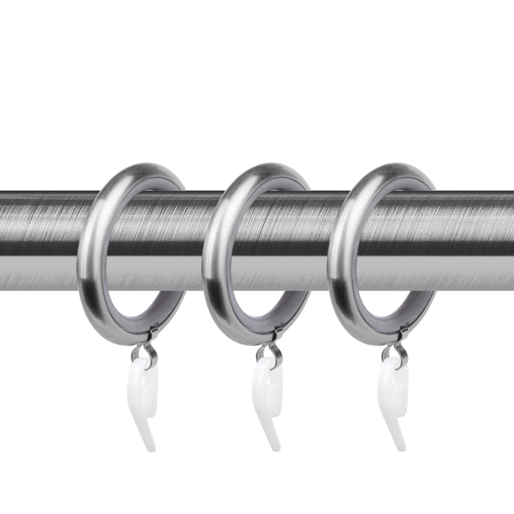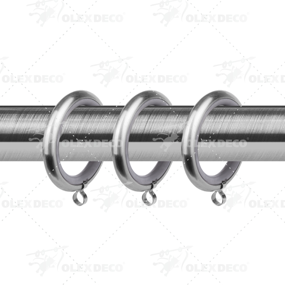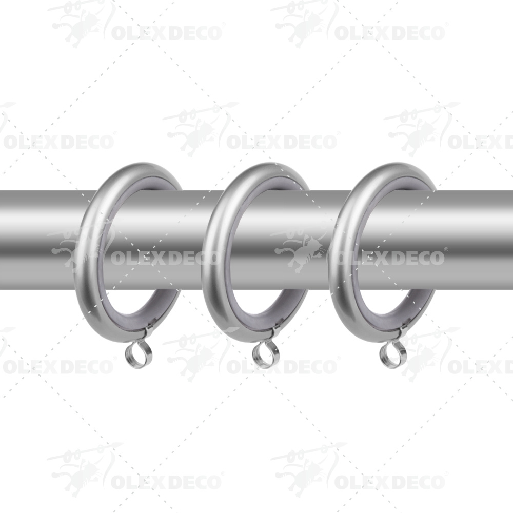 Кольца выполнены из металла, но имеют пластиковую вставку по внутреннему диаметру. Эта особенность способствует бесшумному передвижению колец по карнизу и не образовывает царапины на карнизе даже спустя долгое время. При таком подходе карниз будет радовать своей функциональностью не один год.