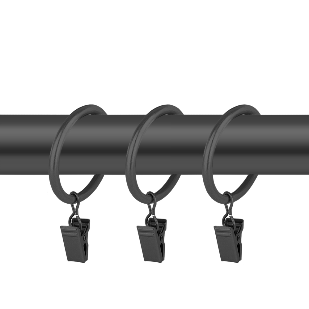 Привычный и проверенный временем вариант крепления штор к кованому карнизу: круглое кольцо с металлическим зажимом.
