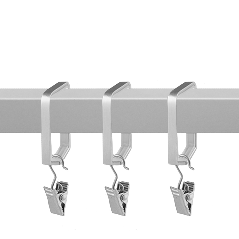 В комплект также входит традиционный металлический зажим, соответствующий кольцу по цвету. Ткань легко зажимается в «крокодильчике» одним движением и надёжно удерживается на карнизе.