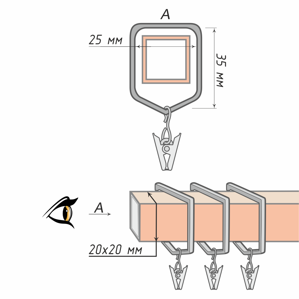 Благодаря классическому зажиму кольцо без затруднений надёжно и быстро соединяется с портьерой. «Крокодил» из металла органично впишется в общий визуальный вид кованого карниза.