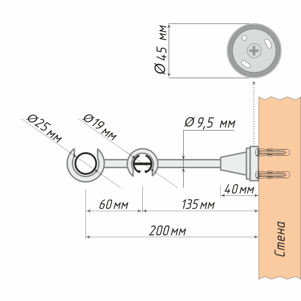 Данный двухрядный кронштейн – замечательный пример держателя, дающего возможность сочетать карнизные штанги различного типа.