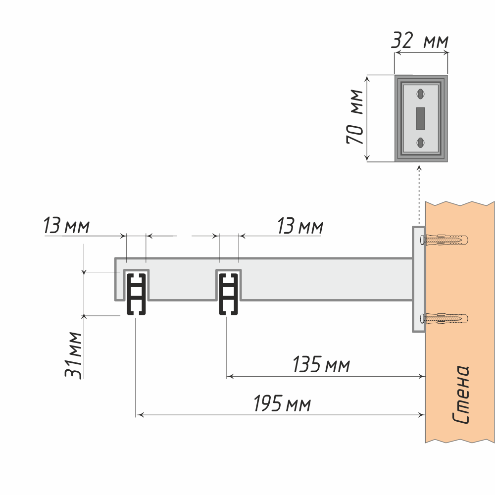 Двухрядная настенная модель, совместимая с профилем «Лайн», идеально вписывается в современный интерьер, где акцент сделан на строгие линии и прямые углы. Геометрический дизайн кронштейна добавляет эстетическую завершённость и стиль.