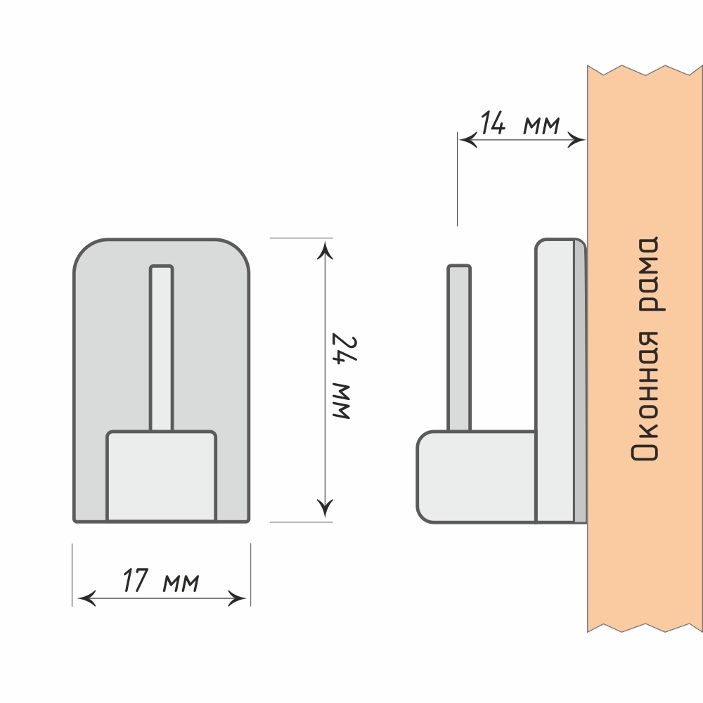 | Наименование для печати | Кронштейн «Мини» 17х24 мм к карнизу «Кафе» отступ 14 мм Прозрачный |
