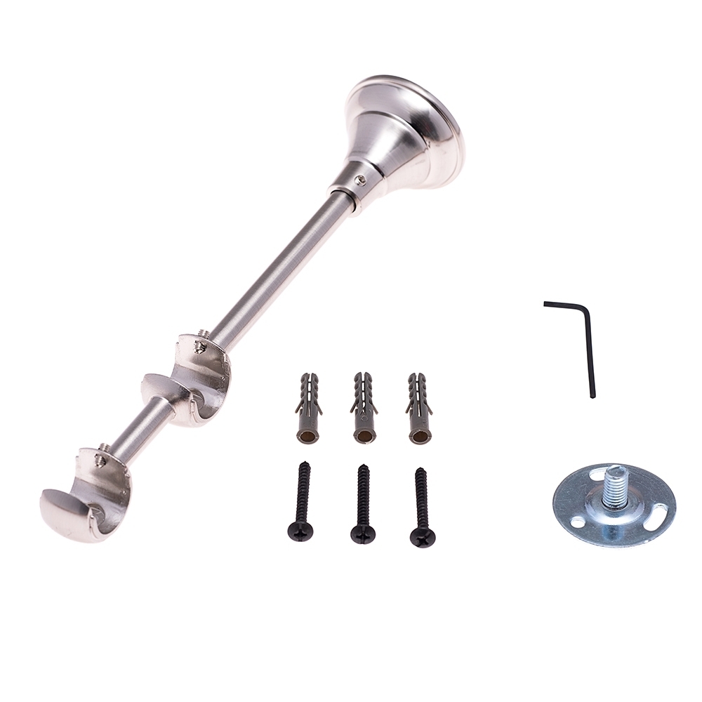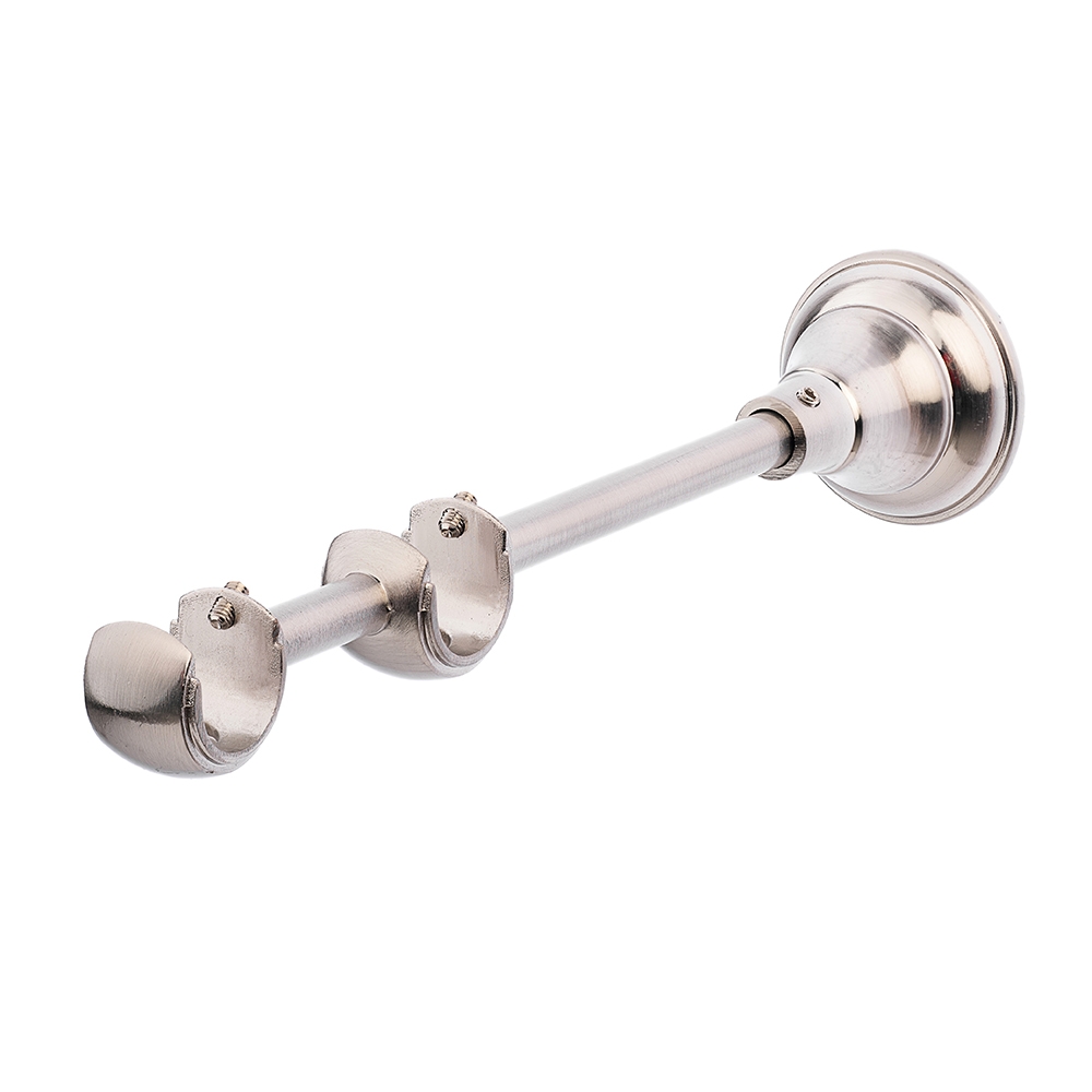 Дизайн кронштейна выполнен в традиционном стиле, что делает его универсальным выбором для любого интерьера. Расстояние между первым и вторым рядом составляет 60 мм. Благодаря этому, на первый ряд карниза можно повесить штору с люверсами или со шторной лентой «Имитация люверсов», портьера не будет касаться легкой тюля на втором ряду.