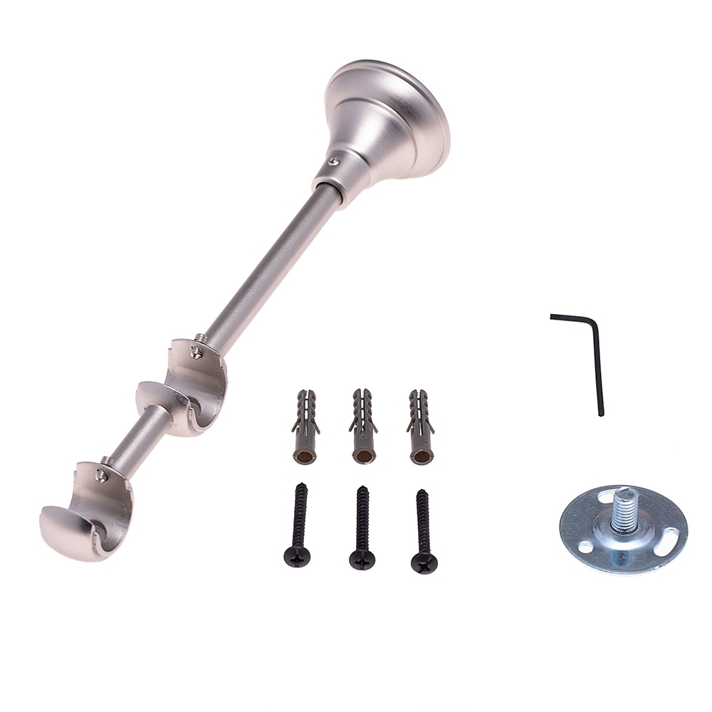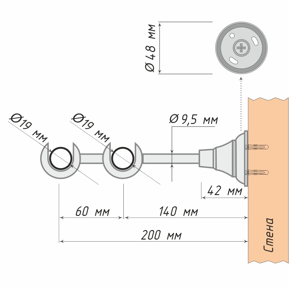 Дизайн кронштейна выполнен в традиционном стиле, что делает его универсальным выбором для любого интерьера. Расстояние между первым и вторым рядом составляет 60 мм. Благодаря этому, на первый ряд карниза можно повесить штору с люверсами или со шторной лентой «Имитация люверсов», портьера не будет касаться легкой тюля на втором ряду.