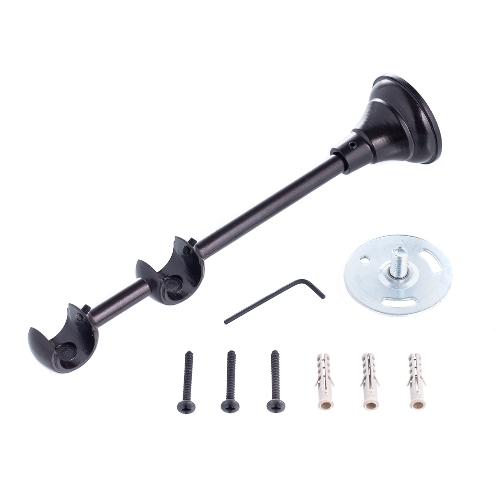 Дизайн кронштейна выполнен в традиционном стиле, что делает его универсальным выбором для любого интерьера. Расстояние между первым и вторым рядом составляет 60 мм. Благодаря этому, на первый ряд карниза можно повесить штору с люверсами или со шторной лентой «Имитация люверсов», портьера не будет касаться легкой тюля на втором ряду.