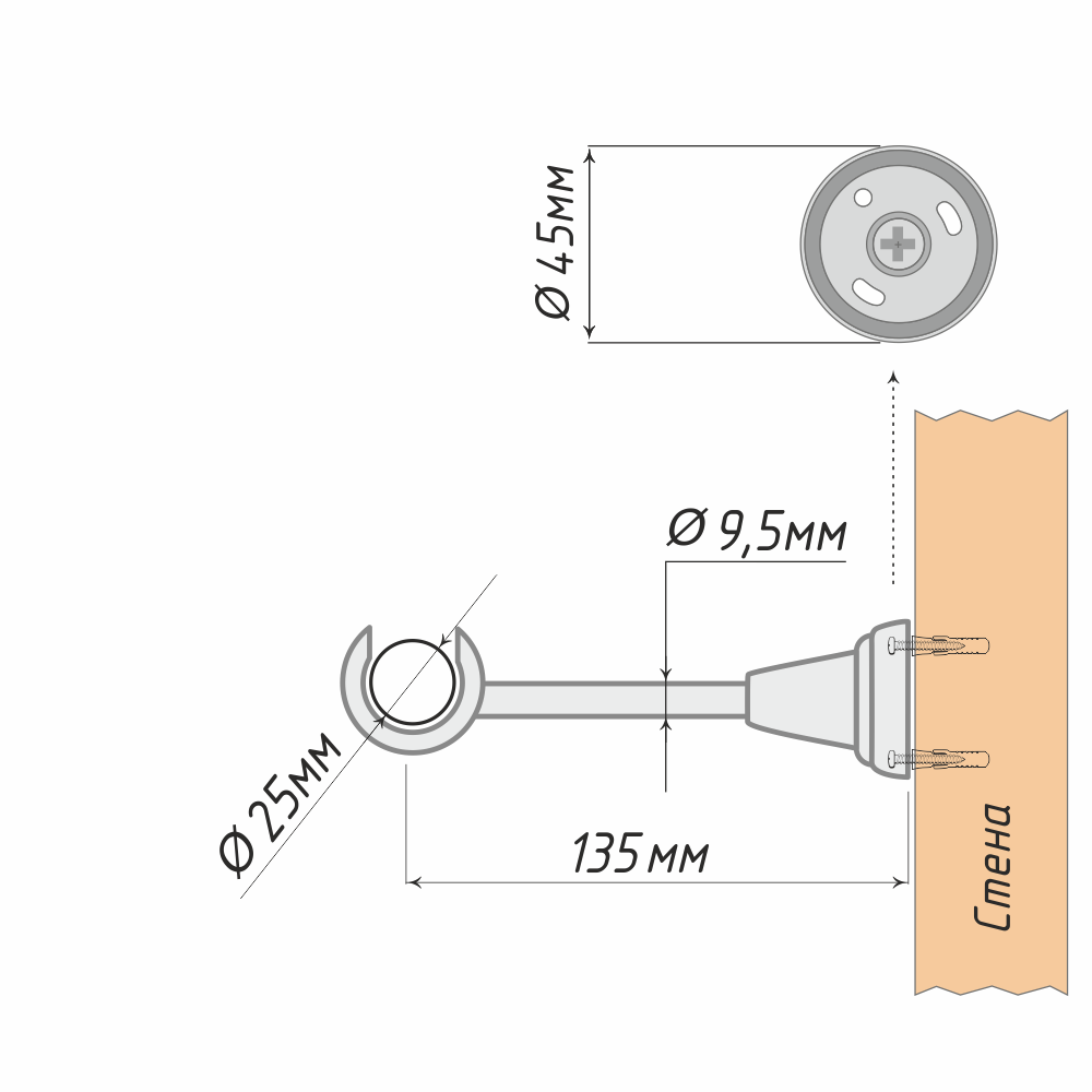 | Отступ от потолка (мм) | 135 |