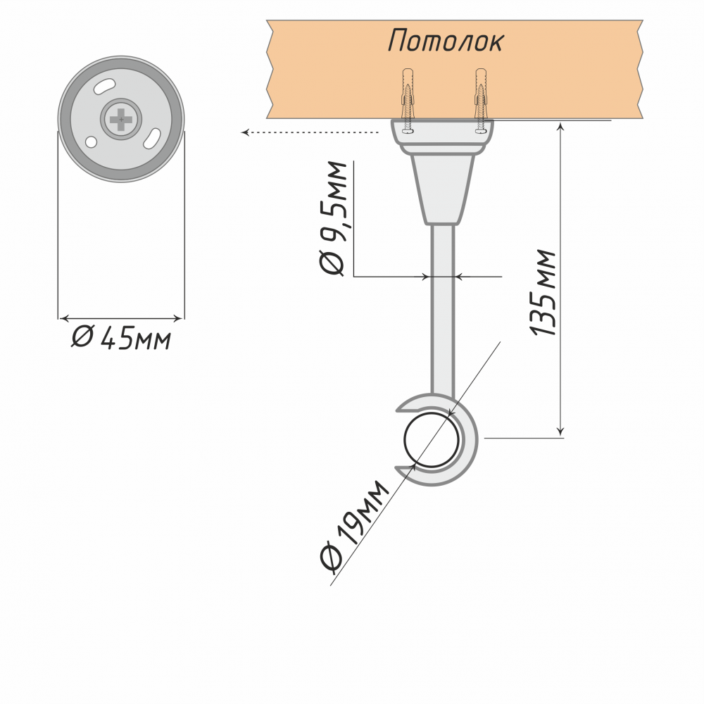 Представленная модель имеет стеновой и потолочный вариант крепления.
