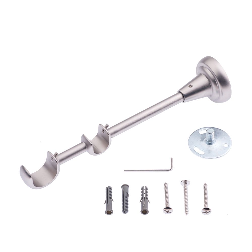 Двухрядный кронштейн для создания шторного ансамбля, в котором первый ряд (труба диаметром 25 мм) занимают тяжеловесные портьеры, а на втором ряду располагаются лёгкие прозрачные занавески.