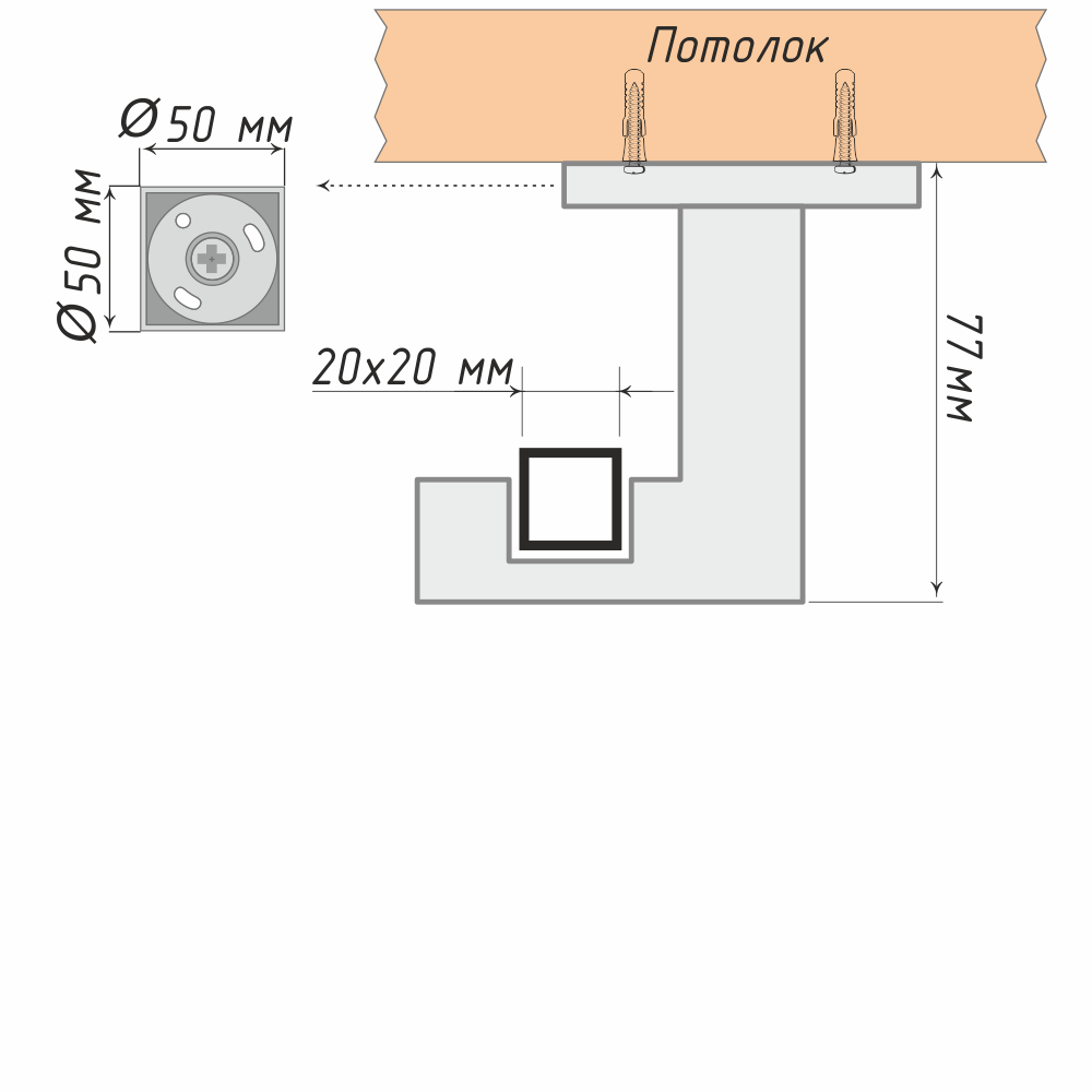 | Наименование для печати | Кронштейн «Потолочный I Квадро 20х20» НС |