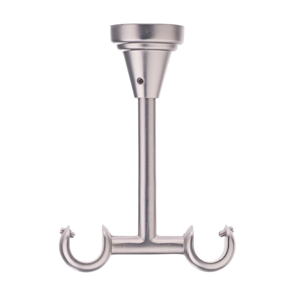 Кронштейн металлический двухрядный, предназначенный для крепления к потолку. На изделие можно устанавливать кованые трубы различного диаметра. Это даёт возможность разместить на первом ряду круглую штангу диаметром 25 мм и повесить на неё гардины из тяжеловесных материалов.