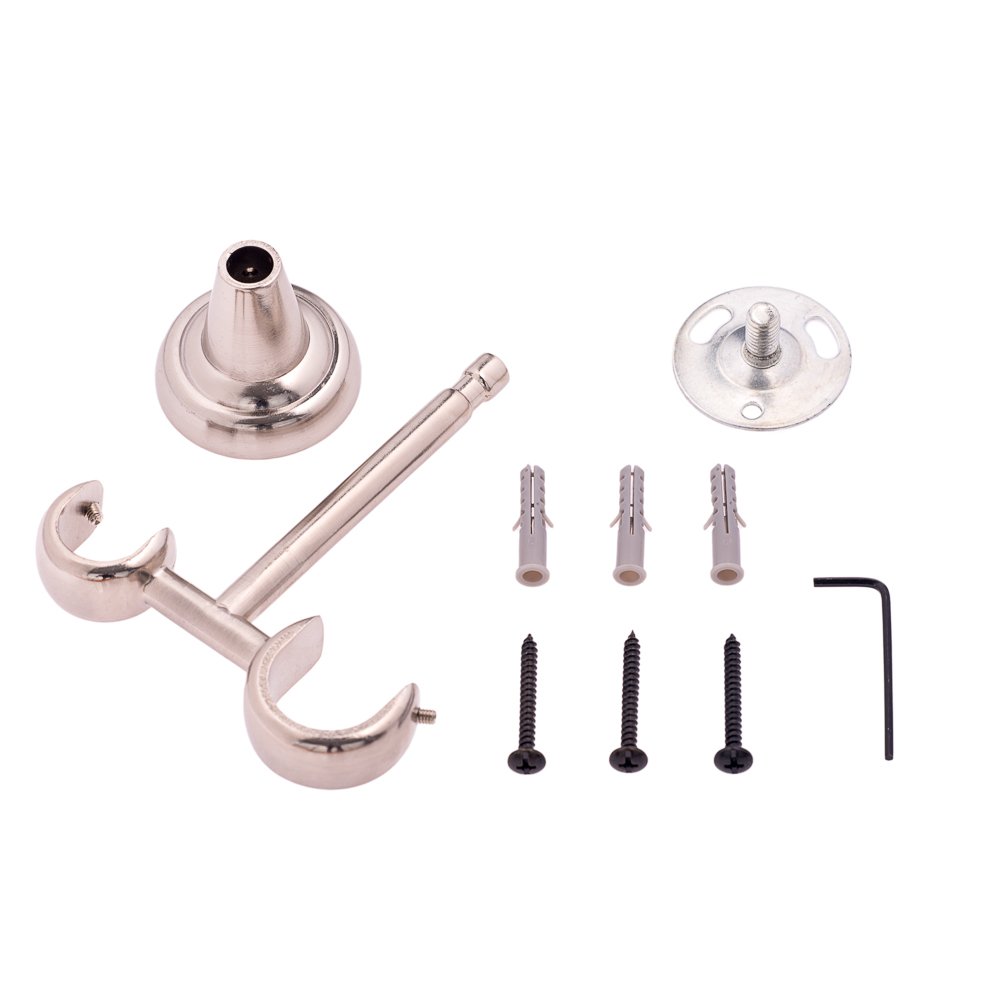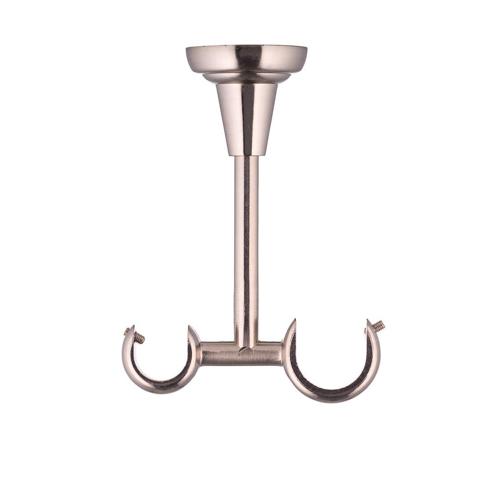 Кронштейн металлический двухрядный, предназначенный для крепления к потолку. На изделие можно устанавливать кованые трубы различного диаметра. Это даёт возможность разместить на первом ряду круглую штангу диаметром 25 мм и повесить на неё гардины из тяжеловесных материалов.