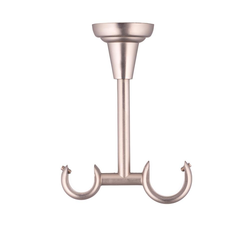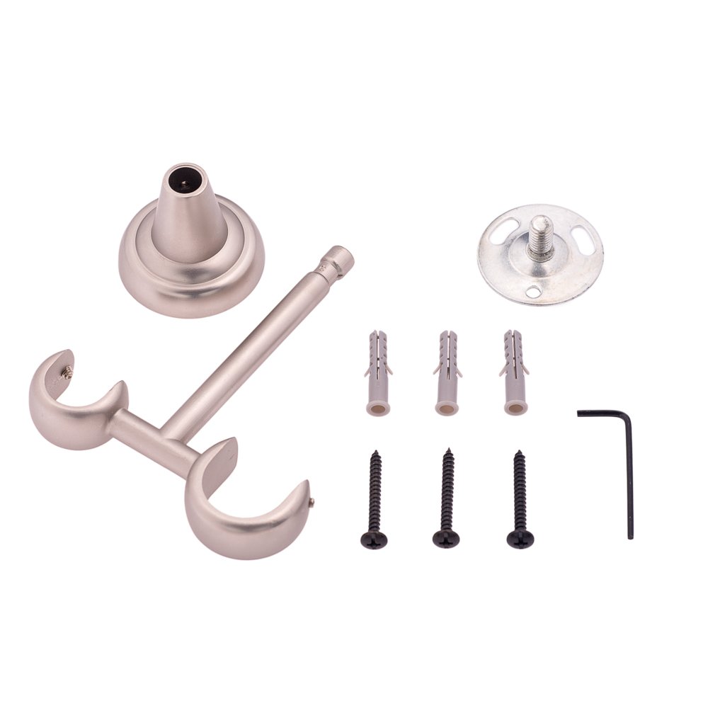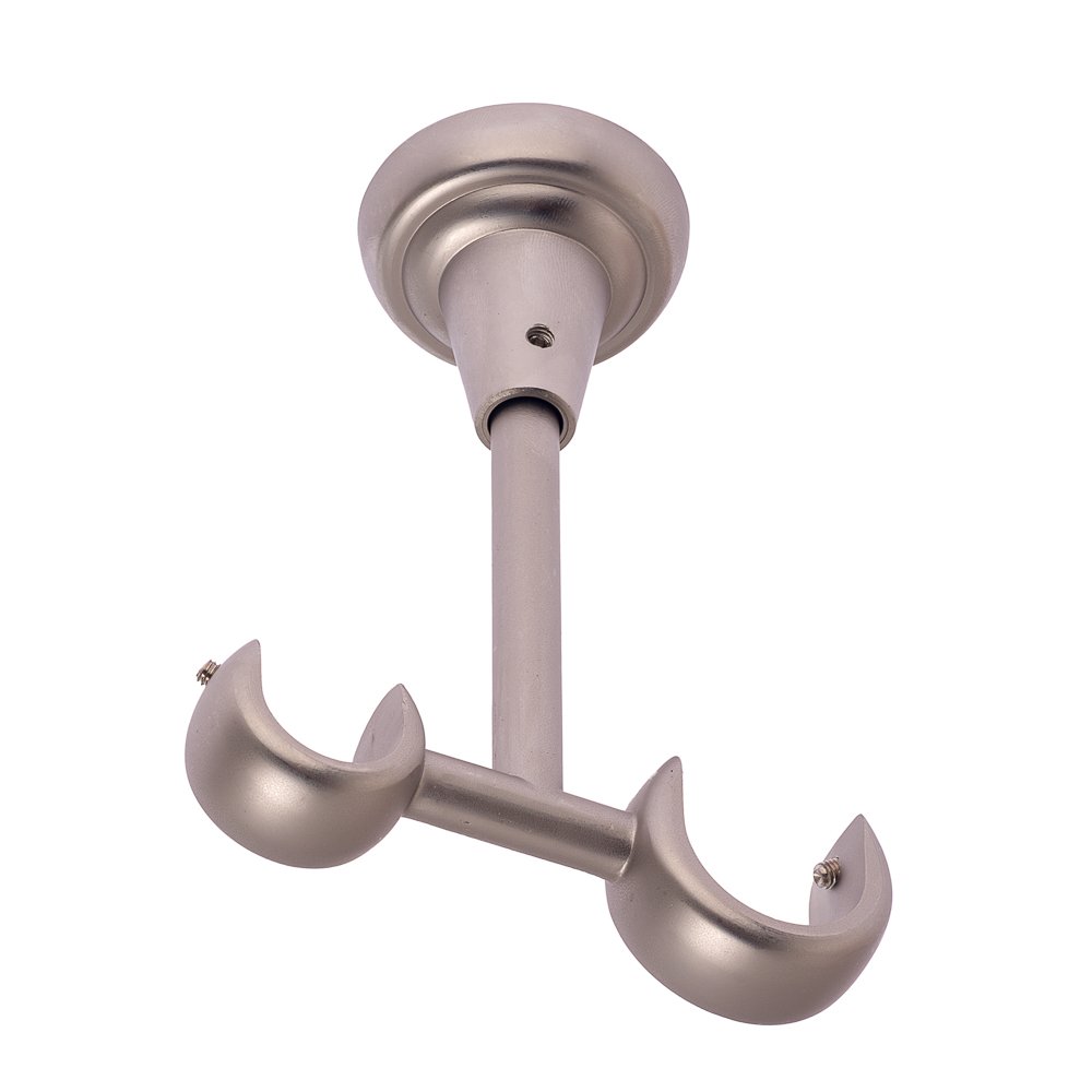 Кронштейн металлический двухрядный, предназначенный для крепления к потолку. На изделие можно устанавливать кованые трубы различного диаметра. Это даёт возможность разместить на первом ряду круглую штангу диаметром 25 мм и повесить на неё гардины из тяжеловесных материалов.