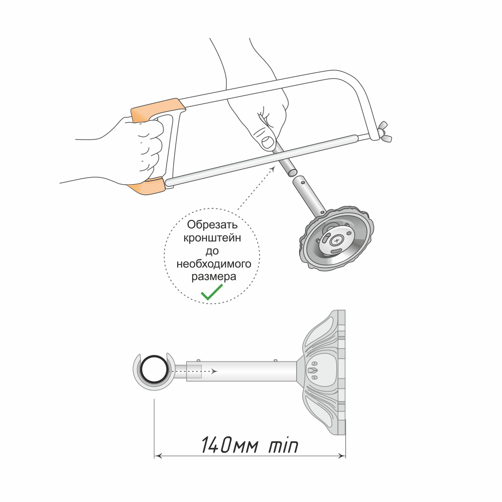 Кронштейны коллекции «Скипетр» имеют телескопическую (выдвижную) ножку. При наличии нестандартного размера подоконника или выступающей батареи такое техническое решение позволяет увеличить длину изделия, регулируя отступ шторы от стены.