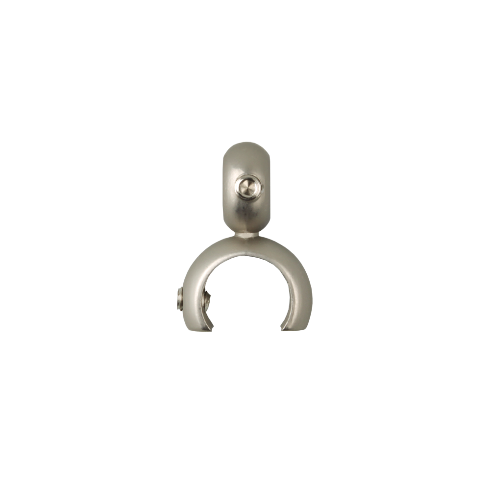 Через верхнее «ушко» изделие надевается на стержень настенного кронштейна. Надёжная фиксация обеспечивается посредством ключа-шестигранника, которым закручивается затяжной винт. Затем в полукруглый нижний держатель помещается карнизная труба, которая также зажимается с помощью шестигранного ключа.
