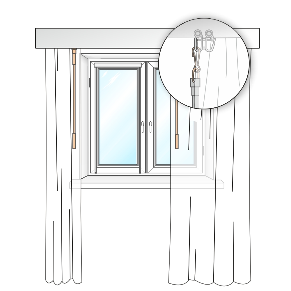Благодаря использованию двойного крючка и поводка для зашторивания, открытие и закрытие шторы становится более деликатным, предотвращая срыв полотна с крючков и порчу ткани любой тяжести.