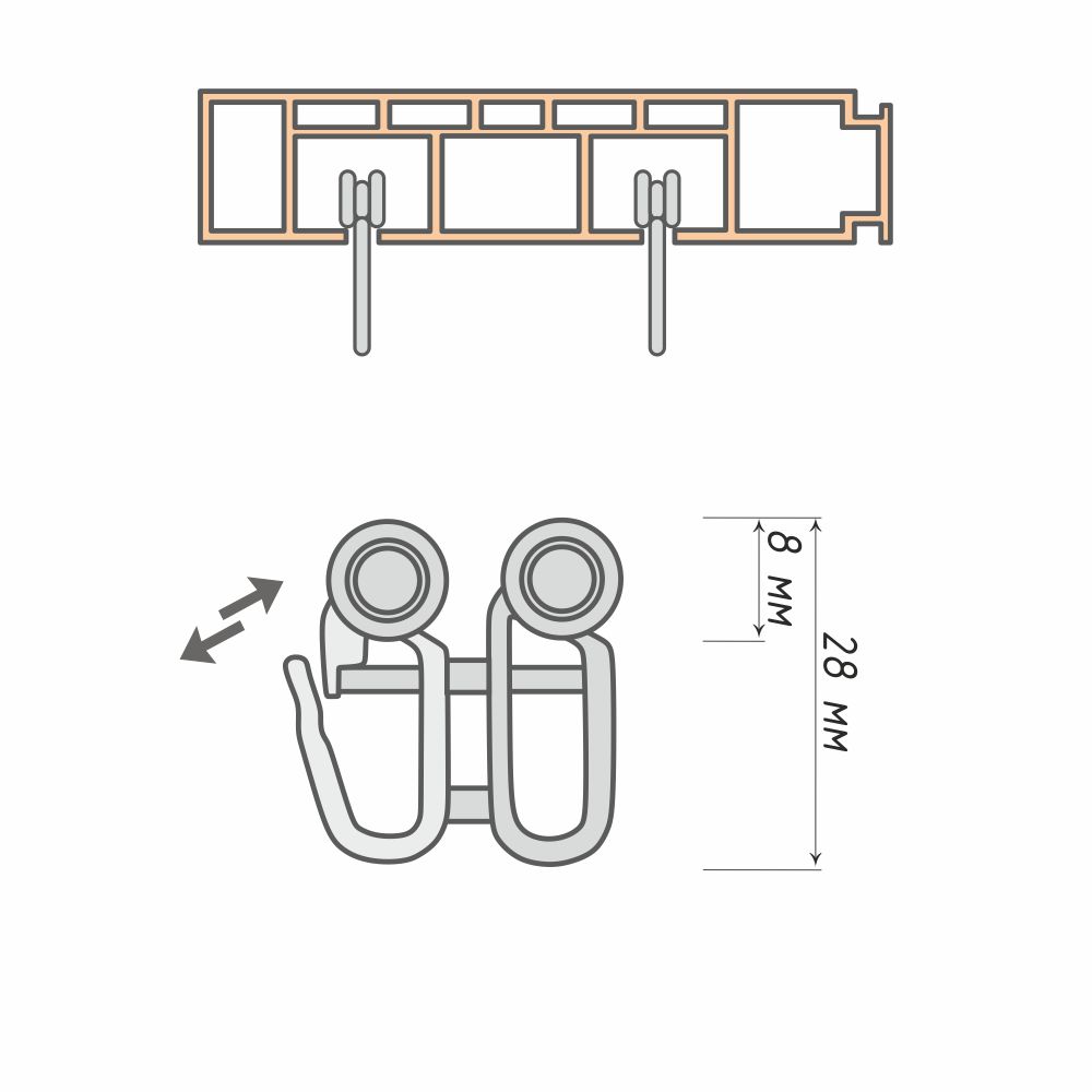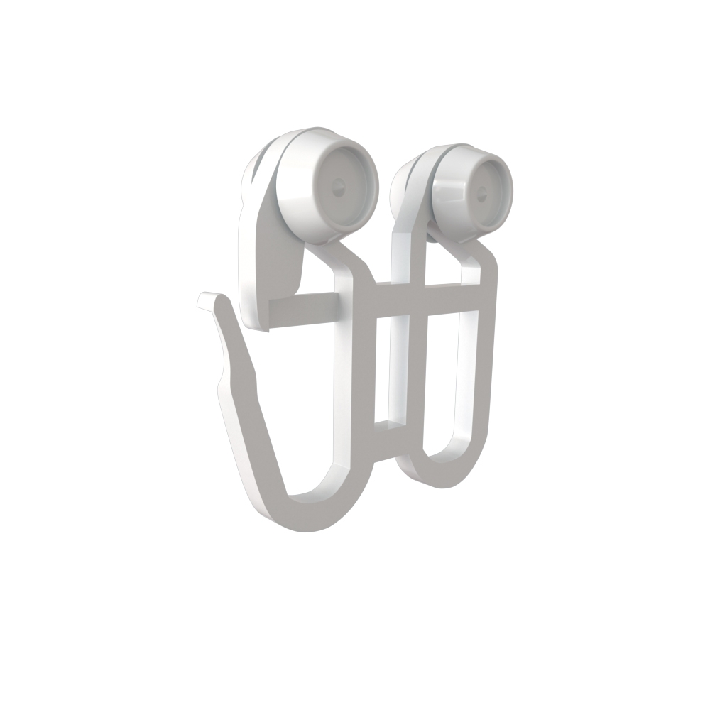 Двойной крючок с роликом – незаменимый аксессуар потолочного карниза, который делает использование шторной композиции максимально комфортным.
