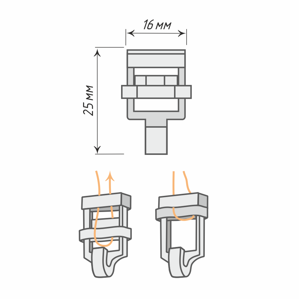 Крючок-клипса – устройство, обеспечивающее устойчивое крепление ленты или шнура подъёмных портьер.