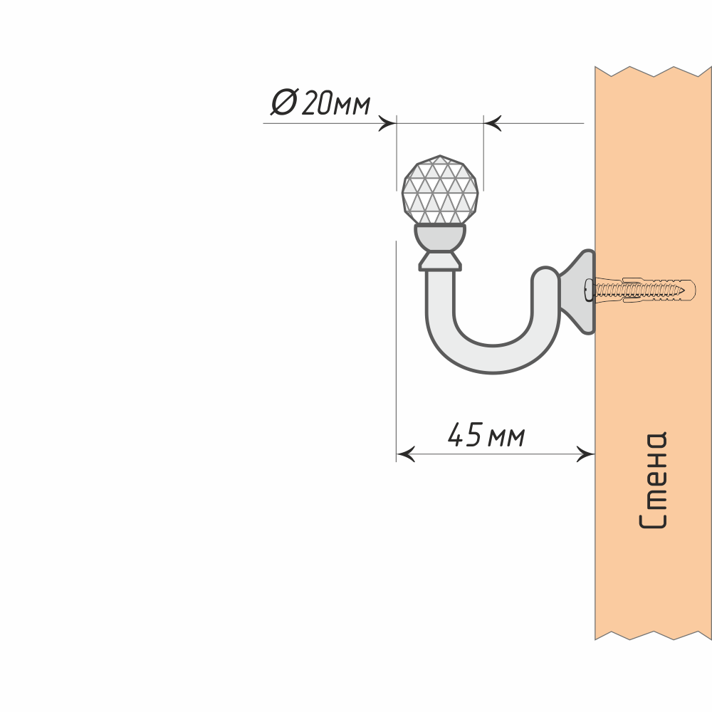 Крючок «Морано» имеет настенное крепление и размещается по бокам оконного проема.