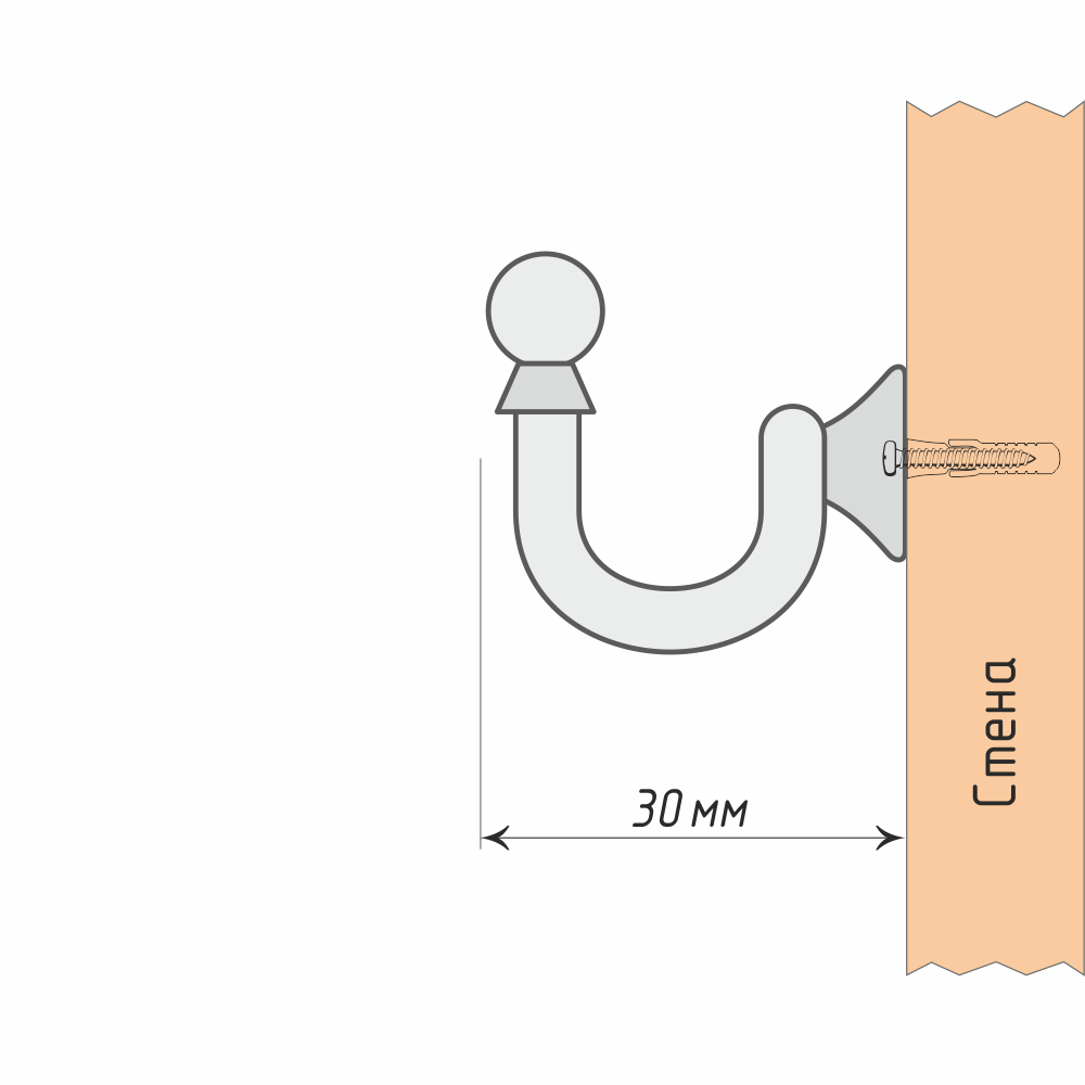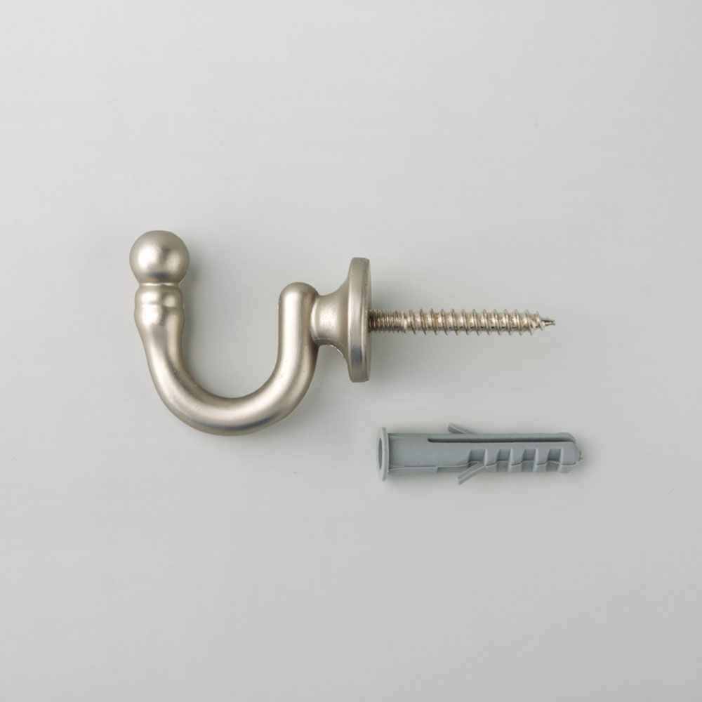 Крючок винтовой имеет настенный вариант крепления и размещается по бокам оконного проема.